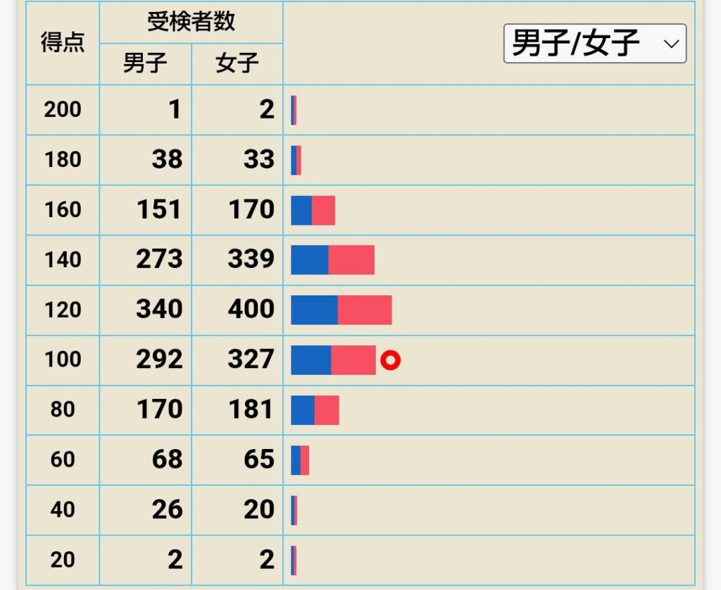 前回は速報で急激に受検者数が増えていましたが今回は変わらず。点数の集計方法の変更等も無かったようです。