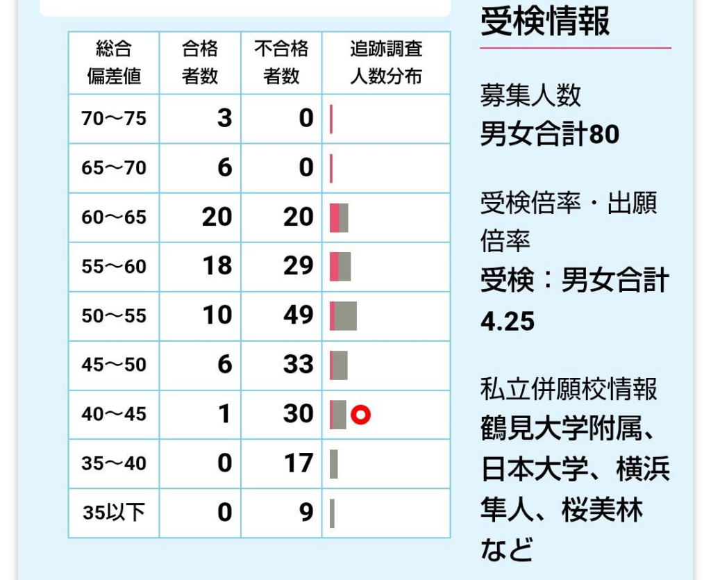 偏差値65以上をとれば安全圏。65未満になると一気に合格率50%に。